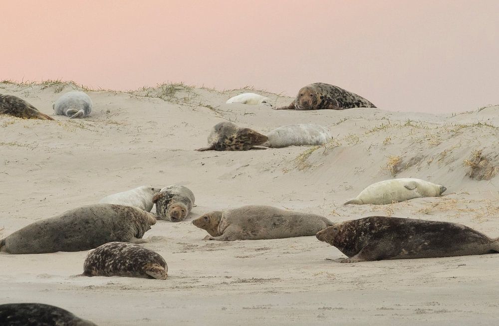 Kegelrobben-Harems liegen auf Richel, dem Ort in den Niederlanden, an dem die Geburten dieser Art am häufigsten stattfinden