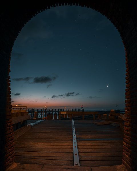 Blick über die Westerschelde vom einzigen verbliebenen Stadttor von Vlissingen aus. Dieses Tor befindet sich im Keizersbolwerk am Ende des heutigen Boulevards von Vlissingen.