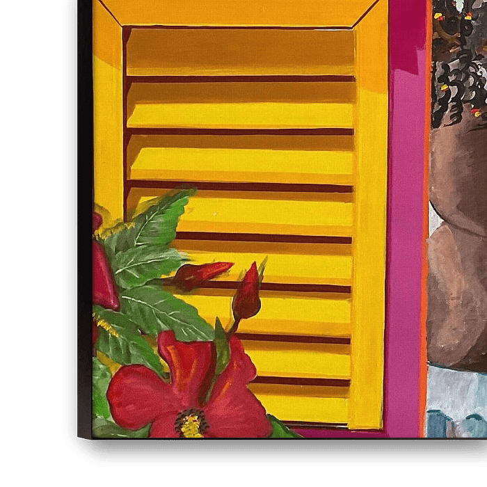 Farbenfrohe tropische Atmosphäre. Ursprünglich auf Leinwand 120cm x 100cm mit Acrylfarbe gemalt.