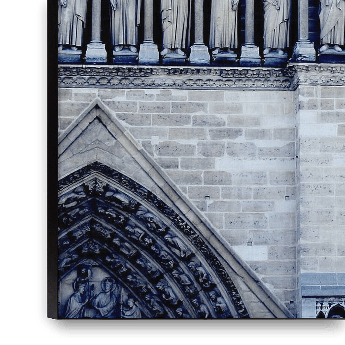 Stück einer Kirchenwand mit Heiligenstatuen in Cyanotypie