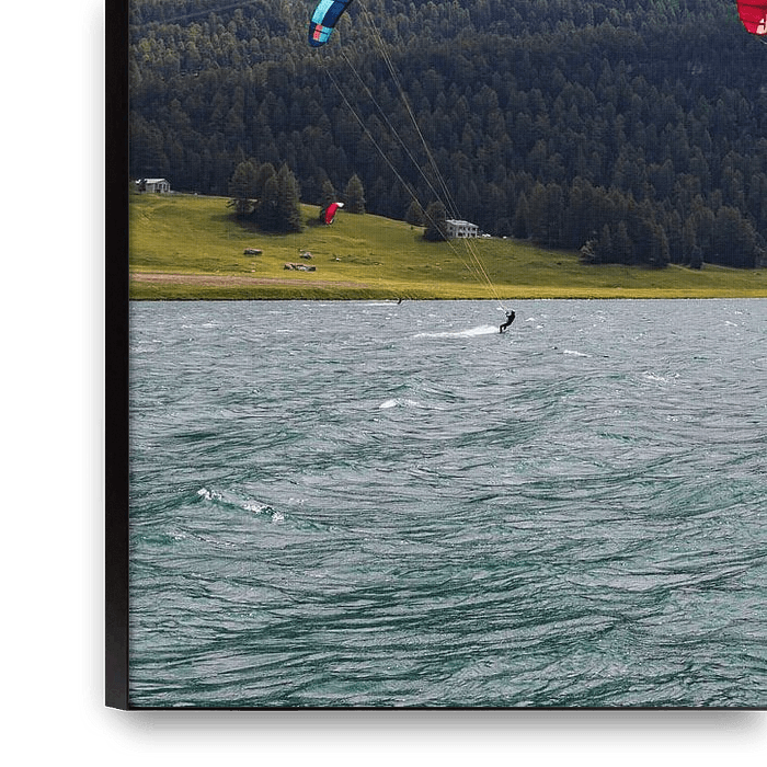 Kitesurfen am Silvaplanersee bei Silvaplana in Graubünden, Schweiz.
