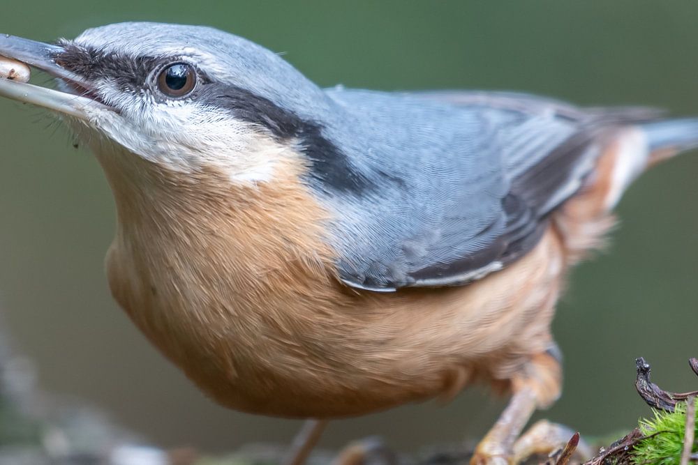 Kleiber, kleine Vögel mit einem relativ großen Schnabel, gut zum Sammeln von Nüssen geeignet. Foto aus einem Versteck aufgenommen. 5328 bei 3492 px. 18,29 MP