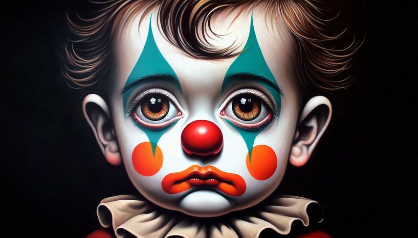 Bestelle dieses Porträt Kleiner Clown mit Seele von Sabine Wagner als Reproduktion auf Leinwand, Alu-Dibond, als Poster, Fototapete oder Acrylglasbild.