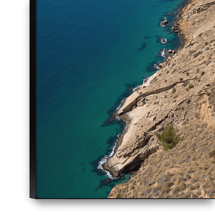 Bestelle das Foto Klippen ragen über dem Mittelmeer empor von Adriana Mueller als Reproduktion auf Leinwand, Alu-Dibond, als Poster, Fototapete oder Acrylglasbild.
