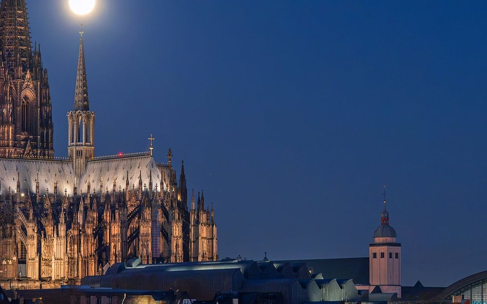 Vollmond über dem Kölner Dom, Rheinland in Nordrhein-Westfalen, Deutschland