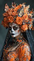 Reina de las Mariposas Diese Kunstserie ist von der reichen Symbolik des Día de los Muertos inspiriert, einer Tradition, in der Leben, Erinnerung und Vergänglichkeit zusammenkommen. In diesem Porträt erscheint eine geheimnisvolle Frau als Königin der Verwandlung, geschmückt mit barocken Ornamenten, Rosen und…