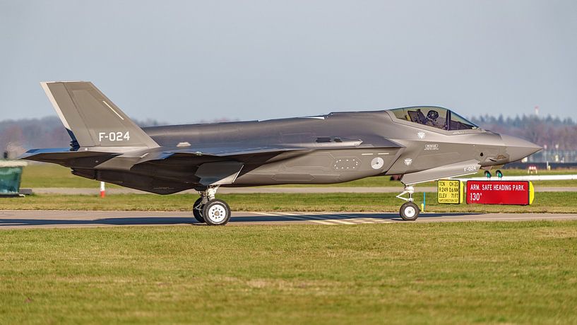 Lockheed Martin F-35 Lightning II der Königlichen Luftwaffe kurz vor dem Start zu einem neuen Trainingsflug. Die F-024 war die erste F-35, die für den Flugplatz Volkel…