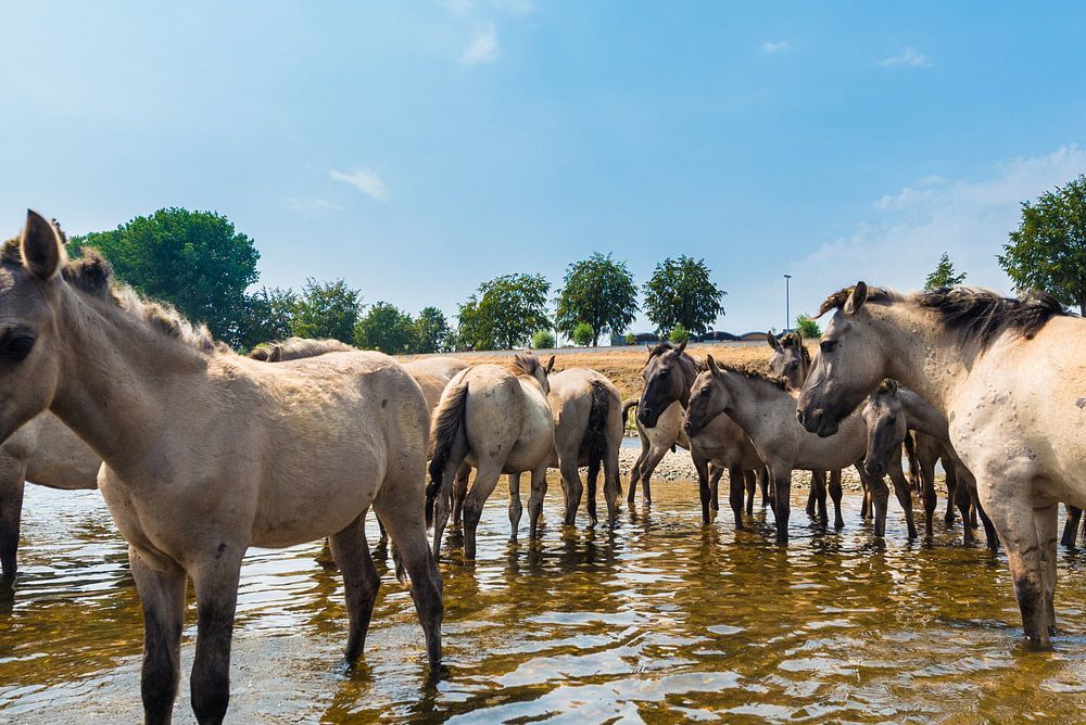 afkoelen in het water van de laagstaande rivier