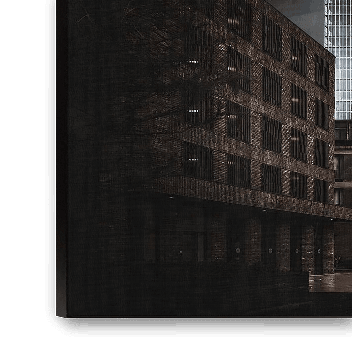 Eine surreale Ansicht von Kop van Zuid: De Rotterdam und Toren op Zuid (KPN-Hauptsitz) mit den (ehemaligen) Lagerhäusern im Vordergrund. Fotografiert mit langer Verschlusszeit (für den Himmel) und einer Nachbearbeitung in Photoshop im Stil der schönen Künste. Ich habe etwa sieben manuelle Auswahlen von (Teilen) der Gebäude, des Himmels und des Platzes vorgenommen und sie einzeln belichtet.