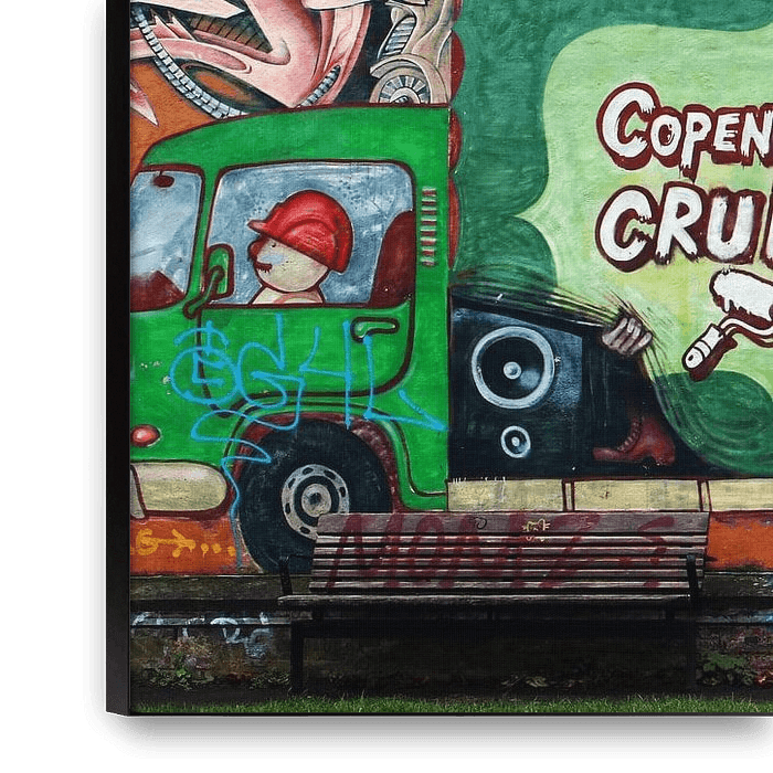 Bestelle dieses abstrakte Wandbild Kopenhagen Straßenkunst von Inge Hogenbijl als Reproduktion auf Leinwand, Alu-Dibond, als Poster, Fototapete oder Acrylglasbild.