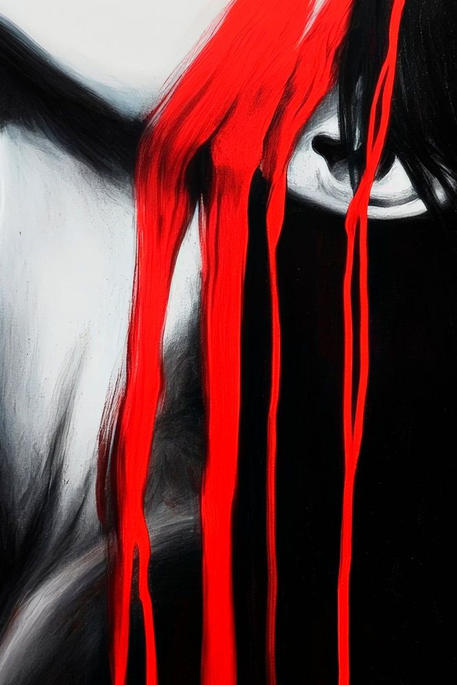 Ein faszinierendes Zusammenspiel aus kontrastierenden Farben entfaltet sich hier: Die kühle Eleganz der Schwarz-Weiß-Darstellung wird durch lebendige rote Tropfen durchbrochen, die Emotion und Intensität ausstrahlen. Diese kraftvolle Komposition eignet sich hervorragend für ein modernes Wohnzimmer, wo sie Gespräche anregen und kreative Gedanken inspirieren kann.