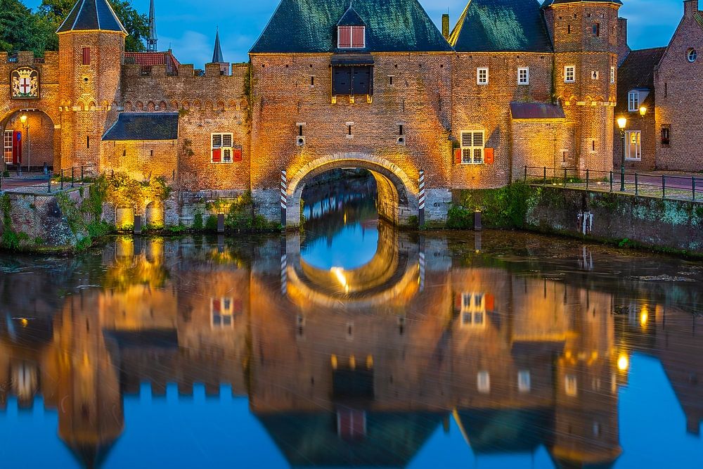 Dieses Bild vom Koppelpoort in Amersfoort wurde während die Blaue Stunde an einem Abend im September 2017 gemacht.