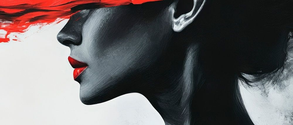 Ein kraftvolles Porträt in Schwarz-Weiß, das mit einem leuchtenden Rot akzentuiert wird und Emotionen entfesselt. Die dynamischen Pinselstriche scheinen den Blick der abgebildeten Person zu umhüllen und verleihen dem Werk eine geheimnisvolle Aura. Dieses Kunstwerk findet seinen idealen Platz im Wohnzimmer, wo es Gespräche anregen und inspirieren kann.