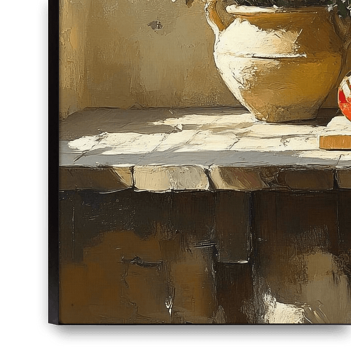 Ihre gewählte Kunst auf Leinwand, gespannt in einem Aluminiumrahmen. Schnell und einfach austauschbar für eine frische Ausstrahlung und ganz nach Ihren Wünschen.