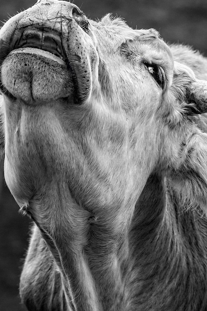 Motiv aus der Kuhfotoserie "Menschlich" von Anna Köhne; Schwarz-Weiß Fotografie.