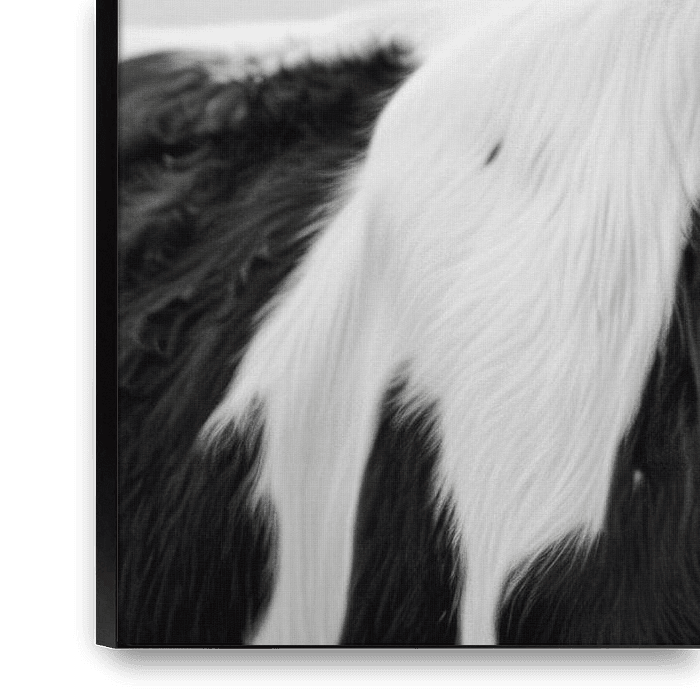 Dieses beeindruckende Schwarz-Weiß-Porträt einer Kuh bringt rustikale Eleganz in jedes Zuhause. Die feinen Details des Fells und die ausdrucksstarken Augen fangen die Essenz des ländlichen Lebens ein. Ideal für Liebhaber von Tieren und minimalistischer Kunst, fügt sich dieses Kunstwerk nahtlos in eine Vielzahl von Einrichtungsstilen…