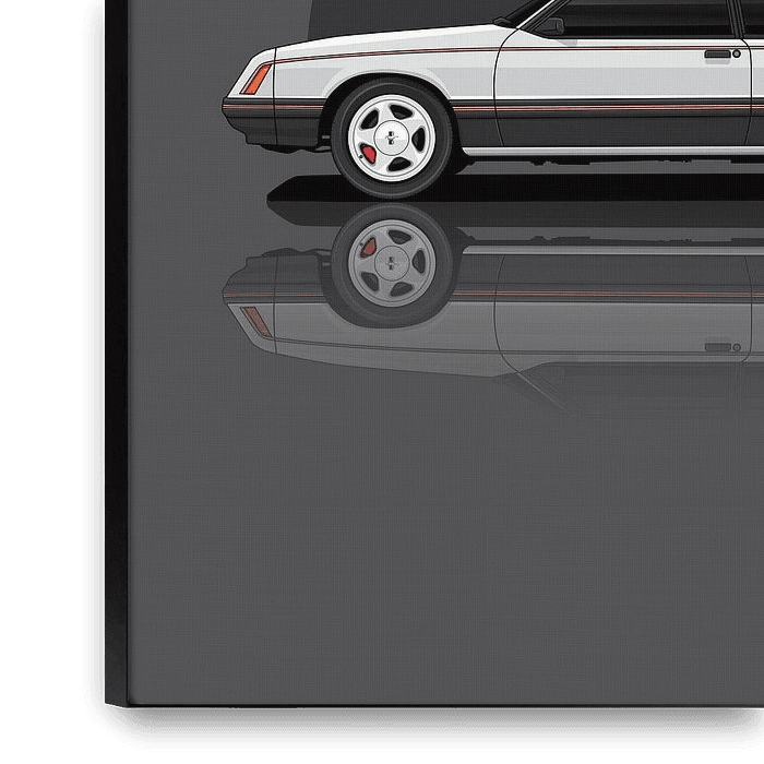 Bestelle diese Illustration Kunst 1979 Ford Mustang Cobra weiß von D.Crativeart als Reproduktion auf Leinwand, Alu-Dibond, als Poster, Fototapete oder Acrylglasbild.