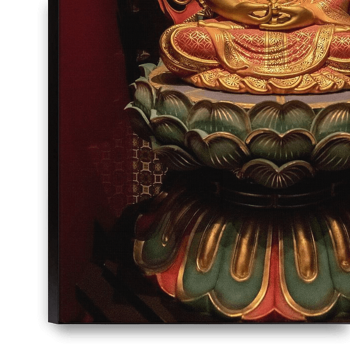Kunstwerk eines chinesischen Buddhas in einem chinesischen Tempel in Singapur. Erleben und erfahren Sie die Atmosphäre von Singapur. Kehren Sie zurück zum Zen mit diesem schönen Kunstfoto. Geeignet für Wohn- und Schlafzimmer, aber auch im Yogastudio.