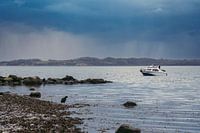Ich habe dieses Foto gerade noch rechtzeitig aufgenommen, bevor der Regen uns erreichte und diese Fischer zweifellos klatschnass wurden. Der herannahende Schauer färbte den Himmel dunkel, wodurch das Weiß des Bootes noch stärker hervorsticht.