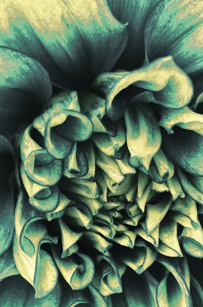 La Dahlia Blue - Farbenfrohe Dahlienblüte - Grunge Style Fotokunst
