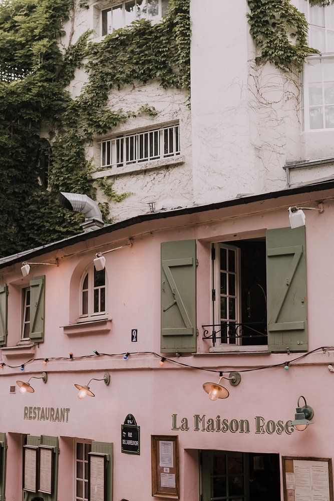 Das berühmte rosa Restaurant/Haus im Pariser Stadtteil Montmartre. Was für ein schönes, idyllisches Bild.