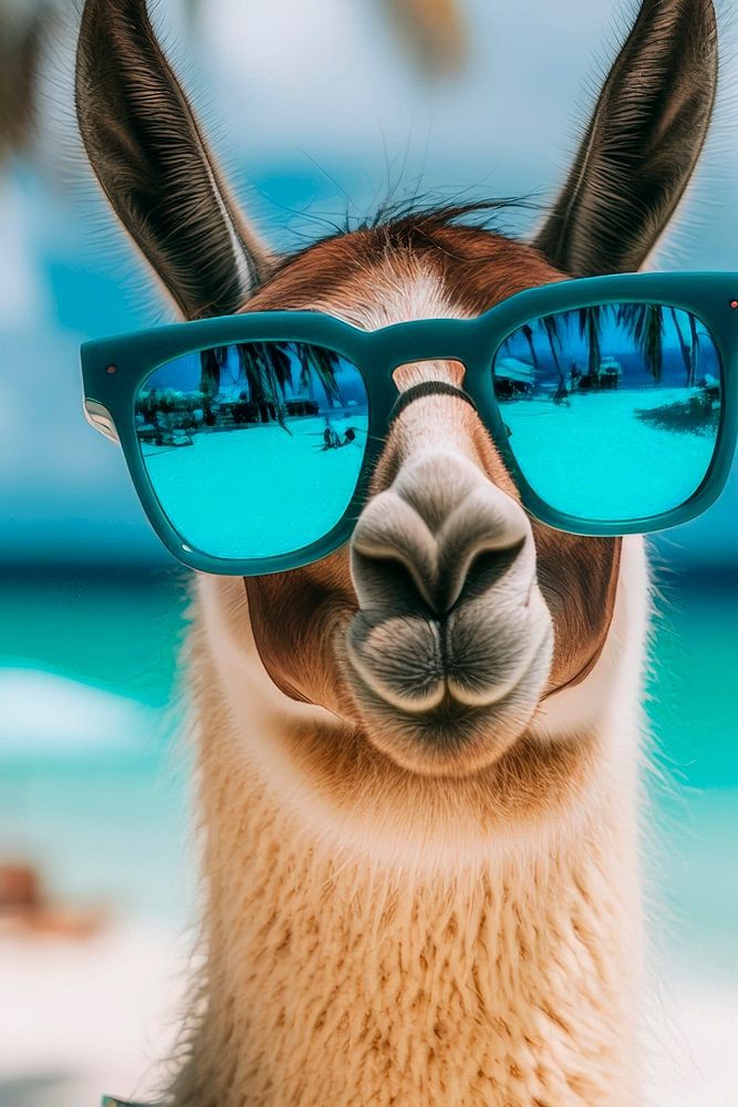 Mit einem frechen Lächeln und stylischen Sonnenbrillen strahlt dieses sonnige Lama Urlaubslaune aus. Umgeben von palmengesäumtem Sandstrand und glitzerndem Wasser, bringt es einen Hauch von Exotik. Ideal für das Wohnzimmer, sorgt es für entspannte Atmosphäre und sorgt für Gesprächsstoff bei jedem Besuch. Ein echter Hingucker!
