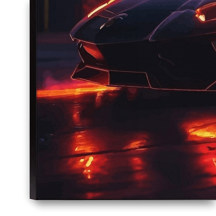 Bestelle das digitale Kunst Bild Lamborghini Aventador Dunkel Neon Automobil Kunst von MIROKKU als Reproduktion auf Leinwand, Alu-Dibond, als Poster, Fototapete oder Acrylglasbild.
