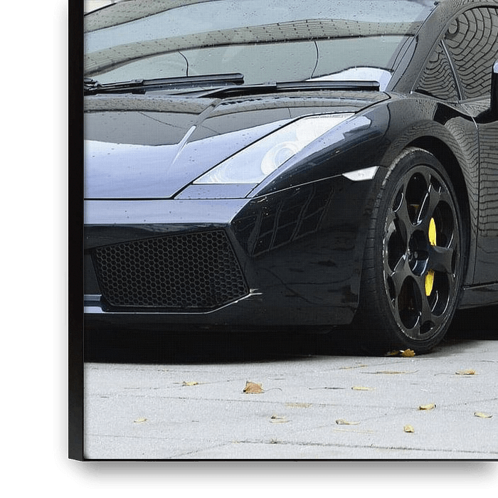 Lamborghini Gallardo in Schwarz geparkt vor einer Mauer. Der von dem italienischen Automobilhersteller 2003 bis 2013 produzierte Gallardo ist das meistverkaufte Modell von Lamborghini und wurde nach einer berühmten Rasse des Kampfstiers benannt