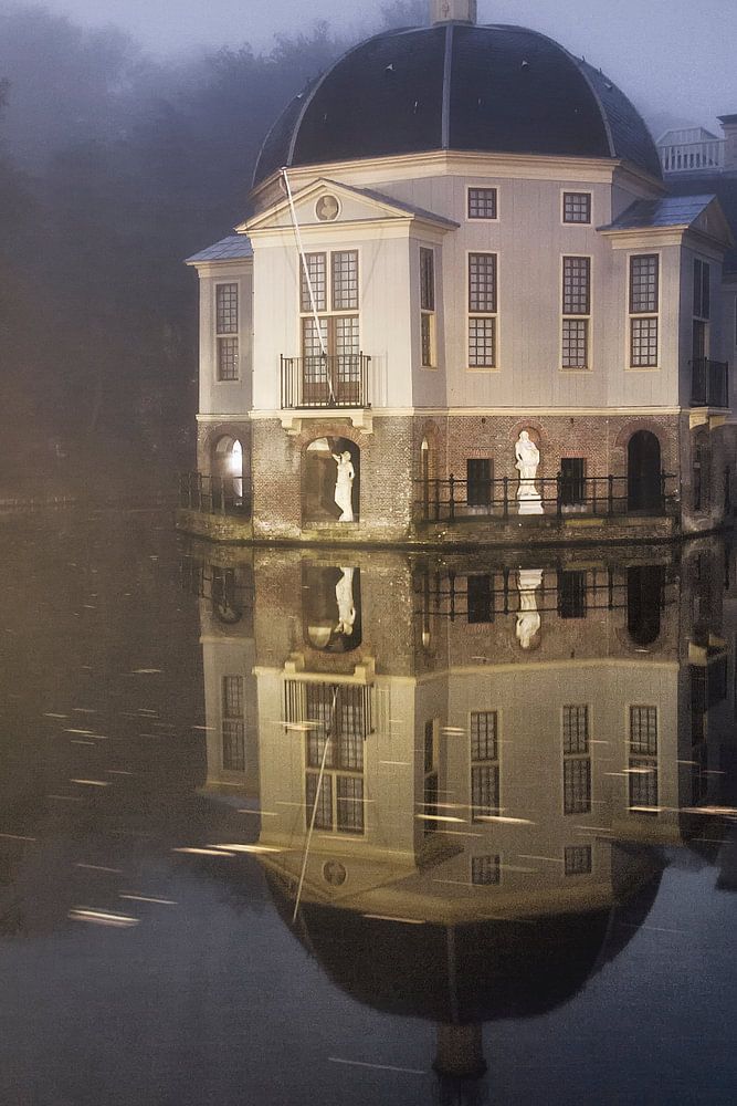Landhaus Trompenburgh in 's-Graveland im Morgennebel, die Niederlande