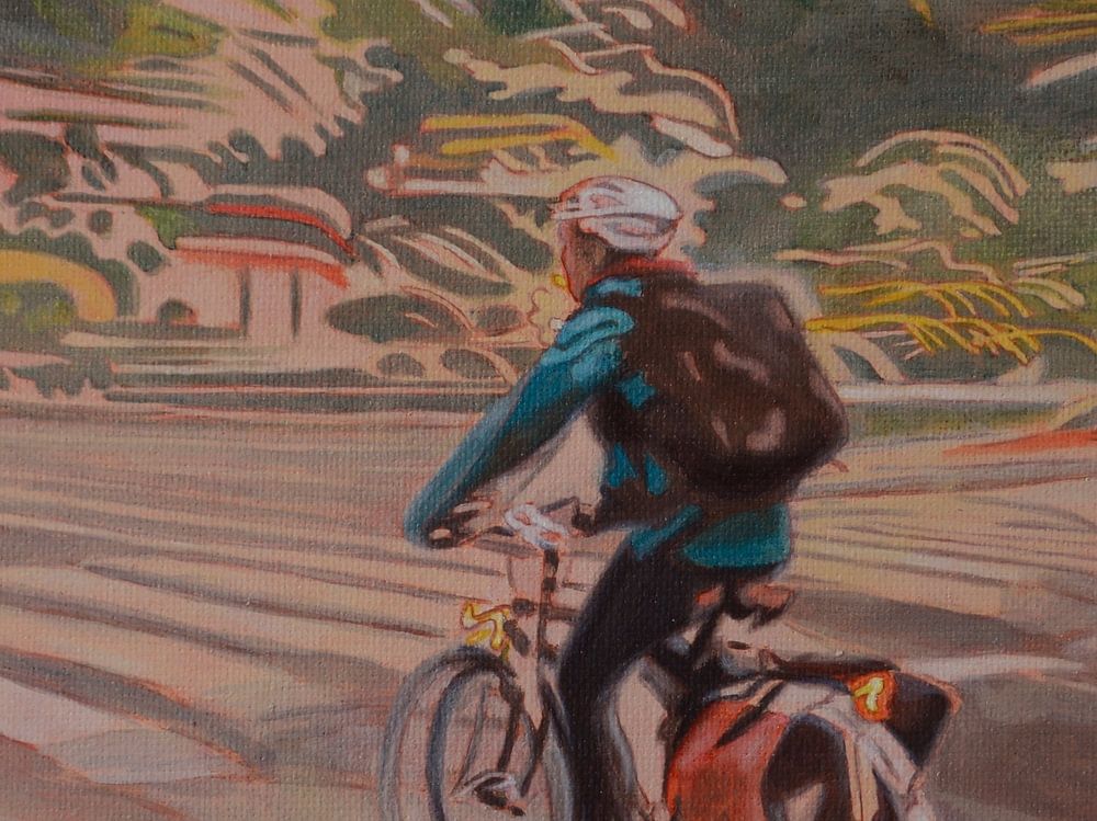 Bicycle II ist Teil einer Serie von Gemälden mit dem Titel Landscapes in Motion. Die gesamte Serie konzentriert sich auf Stadtlandschaften und einige Details darin.