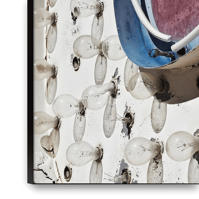 Las Vegas. Beschädigte Neon-Oldtimer-Werbeschilderung in einer friedhofsähnlichen Umgebung nahe dem Streifen von Las Vegas.