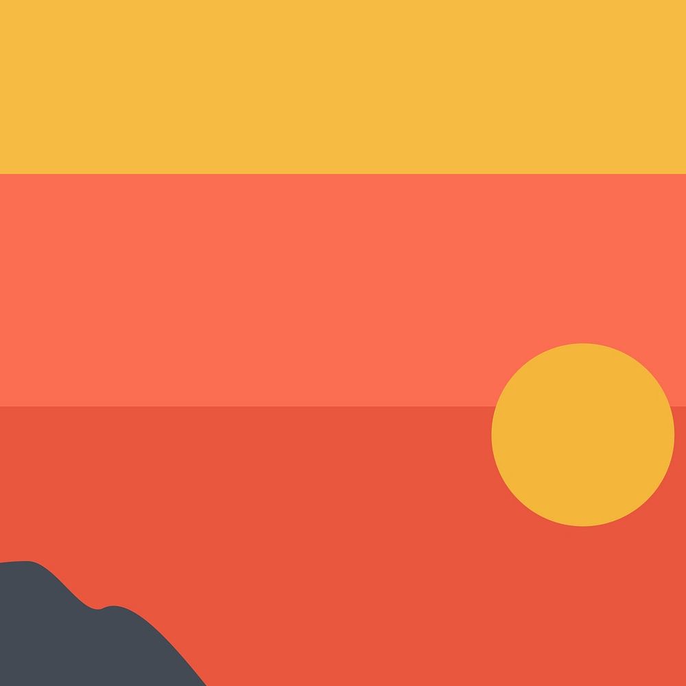 Diese kreisförmige, minimalistische Illustration ist eine kühne und moderne Interpretation der Schönheit der Natur. Sie zeigt einen lebhaften Sonnenuntergang über einer Hügelkette. Die klaren Farbbänder in Gelb, Orange und Rot vermitteln Wärme und Schlichtheit und fangen die Essenz einer friedlichen Dämmerungsszene ein. Perfekt für Fans von Minimal Art, Sonnenuntergängen und geometrisch inspirierten Landschaften.