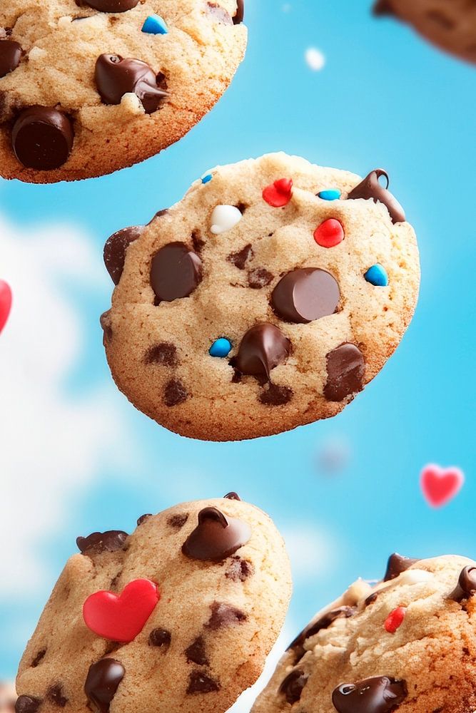 Stell dir vor, frische, schokoladige Kekse schweben durch einen strahlend blauen Himmel, umgeben von kleinen, liebevollen Herzen. Diese lebendige Szenerie bringt Freude und Leichtigkeit in jeden Raum und eignet sich perfekt für die Küche oder das Wohnzimmer. Ein wahrer Genuss für Naschkatzen und Liebhaber des Lebens!