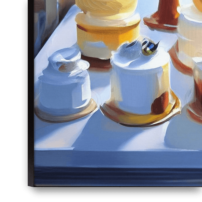 Ihre gewählte Kunst auf Leinwand, gespannt in einem Aluminiumrahmen. Schnell und einfach austauschbar für eine frische Ausstrahlung und ganz nach Ihren Wünschen.