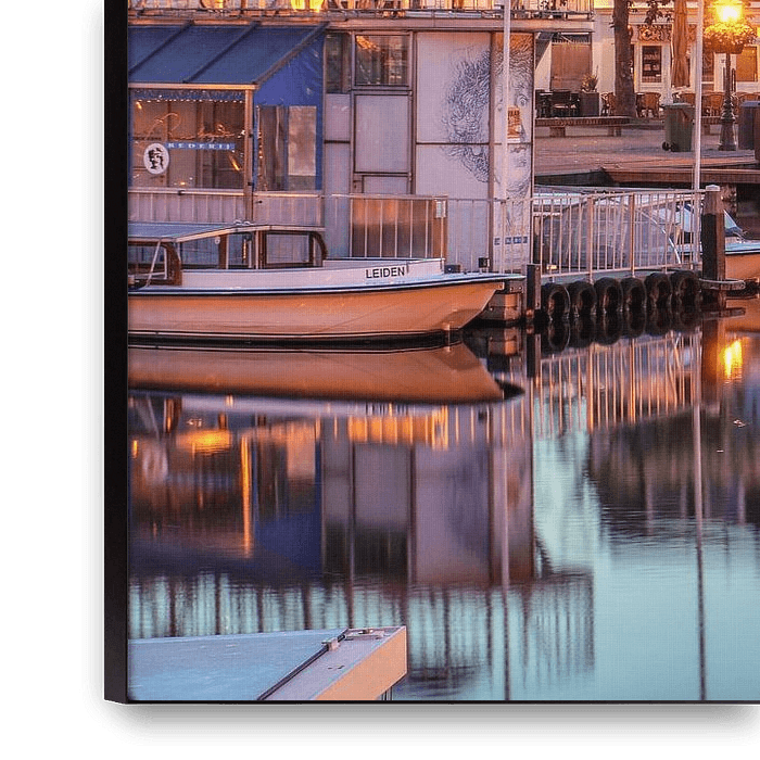 Die Stadt Leiden am frühen Morgen an einem ihrer vielen schönen Plätze. Die Spiegelungen im Wasser, die charakteristischen Laternen, Brücken und hübschen Fassaden machen Leiden immer wieder zu einem Märchen.