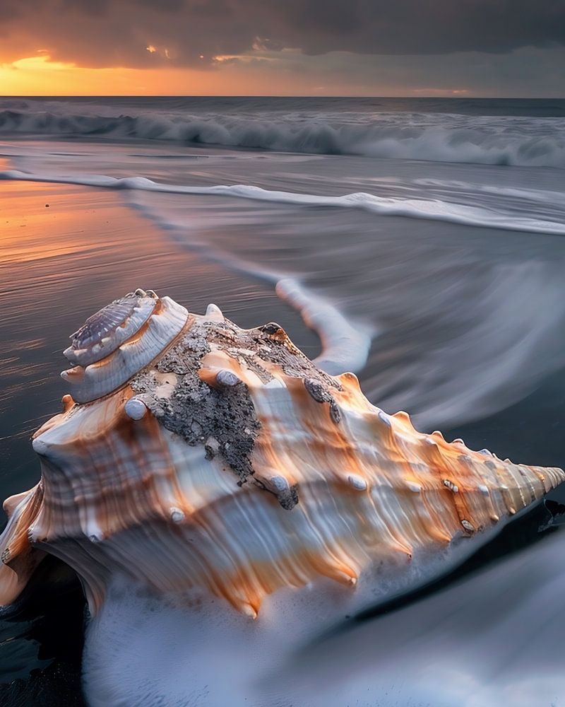 Leuchtende Muschel im Abendrot