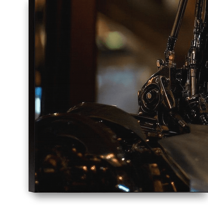 Mit seinen glänzenden Metalloberflächen und leuchtend grünen Augen strahlt dieser futuristische Roboter eine faszinierende Mischung aus Technologie und Mystik aus. Als echter Blickfang verleiht er jedem Wohnzimmer eine kreative Note und regt zu anregenden Gesprächen über die Zukunft der künstlichen Intelligenz an.