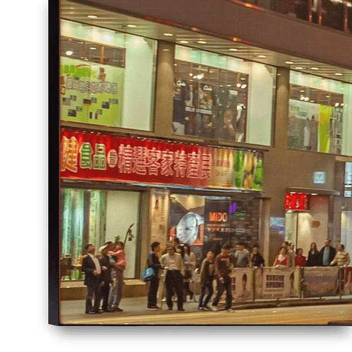 Bestelle das Foto Leuchtreklame nachts in Hongkong von t.ART als Reproduktion auf Leinwand, Alu-Dibond, als Poster, Fototapete oder Acrylglasbild.