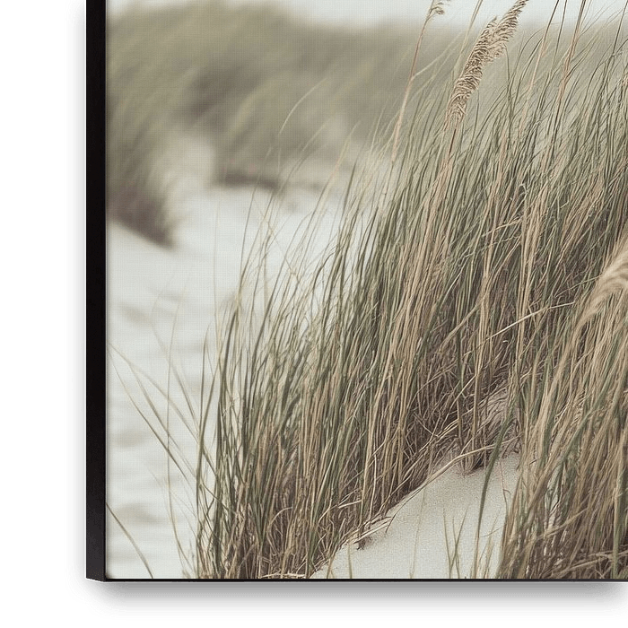 Sanfte Wellen des Windes wiegen die zarten Halme am Strand, während sie den Blick auf einen fernen Leuchtturm freigeben. Der Himmel schimmert in ruhigen Grau- und Blautönen, während die Wolken leise über die Küste ziehen. Ein Hauch von Melancholie und Weite liegt in der Luft, der die Seele des Betrachters sanft umhüllt.