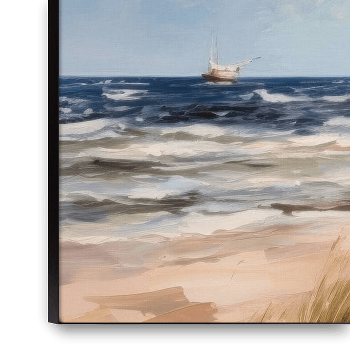 Ihre gewählte Kunst auf Leinwand, gespannt in einem Aluminiumrahmen. Schnell und einfach austauschbar für eine frische Ausstrahlung und ganz nach Ihren Wünschen.