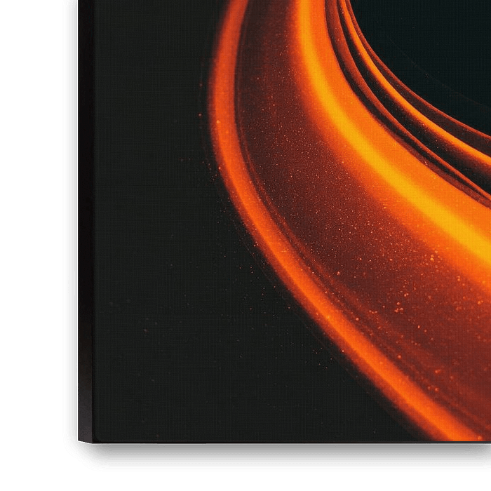 Diese minimalistische Abstraktion zeigt einen leuchtend orangefarbenen Lichtstrom, der sich wie eine sanfte Welle durch einen dunklen Raum bewegt. Die geschwungenen Linien strahlen Wärme und Eleganz aus, während winzige Glitzerpartikel wie Sternenstaub im Licht schweben. Der Kontrast zwischen Licht und Dunkelheit erzeugt eine starke visuelle Spannung, in der Bewegung und Stille aufeinandertreffen. Ein modernes Kunstwerk, das perfekt in zeitgenössische Innenräume passt, die Ruhe, Luxus und abstrakte Schönheit vereinen.