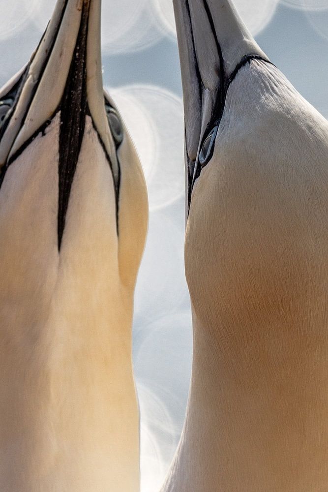 Ein verliebtes Basstölpelpaar baut ein Nest. Dieses Bild wurde speziell für die Liebhaber des Valentinstages aufgenommen. Ein schönes Geschenk von ihm für sie oder umgekehrt.