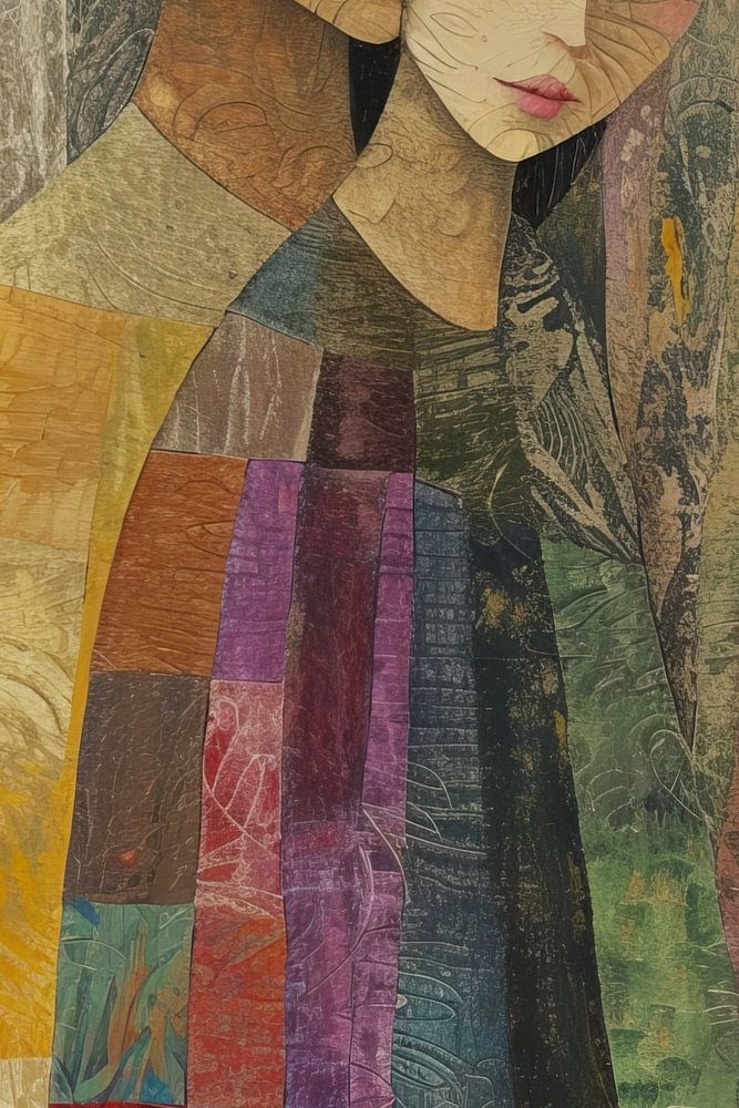 Details: Liebe, Paar, abstrakt, modern, romantisch, bunt, Patchwork, Frau, Mann, Umarmung