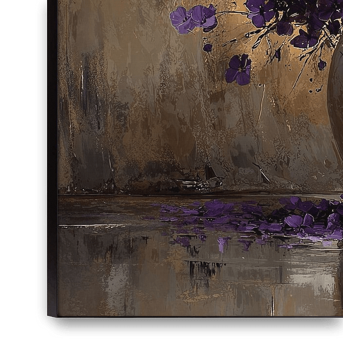 Purple Flowers Painting | Lavender Luxe Eclipse - Modernes Stillleben mit violetten Blumen und goldener Vase