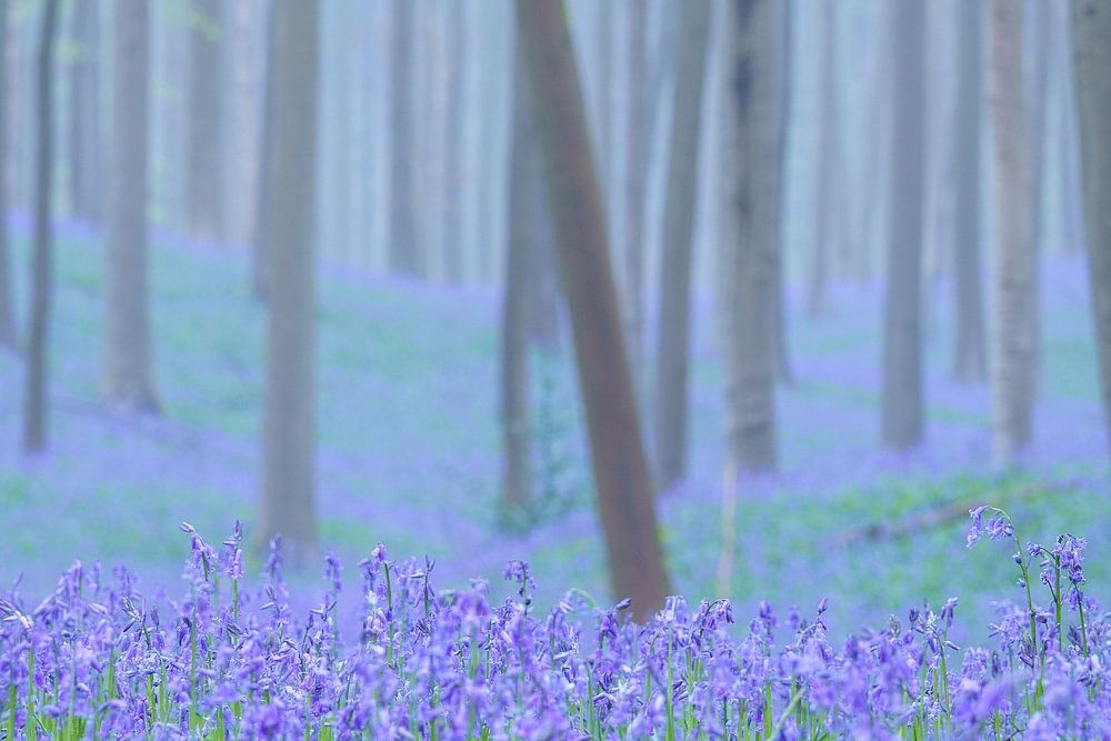 Der Kontrast zwischen dem scheinbar endlosen lila-blauen Hyazinthenteppich und den knospenden Buchenblättern macht den Hallerbos zu einem einzigartigen Ort, um den Frühling im April zu erleben. Schade, dass man mit der Kamera nicht den Blütenduft einfangen kann, denn er verstärkt das Frühlingserlebnis ungemein.