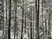 Baumstämme in einem Wald bei Grenoble, Frankreich.