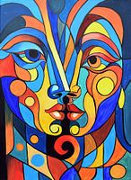 Ausdrucksstarke, dynamische Formen, gesättigte Farben und starke Kontraste erzeugen den Eindruck von Energie und emotionaler Tiefe.