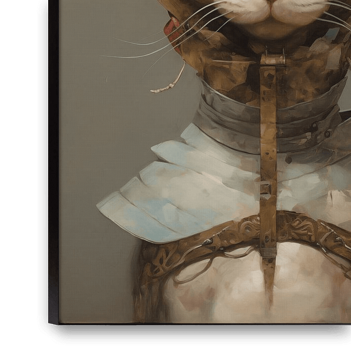 Eine majestätische Katze mit einem durchdringenden Blick, der an Erzählungen aus alten Zivilisationen erinnert. Die hellen Töne ihres Fells und ihrer Kleidung bilden einen schönen Kontrast zu den tiefen Farben ihrer Augen. Ihr Blick verrät eine geheimnisvolle Geschichte, als wäre sie sowohl Zeuge als auch Teilnehmer unzähliger…