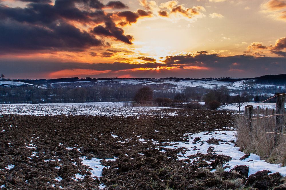 Onverwachtse sneeuw in maart, snel rij ik naar huis van mijn werk om dit kadootje toch nog vast te mogen leggen. Ik krijg er gratis een prachtige zonsondergang bij!