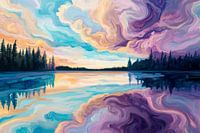 Bestelle dieses abstrakte Wandbild Magische Abendstimmung am See von Poster Art Shop als Reproduktion auf Leinwand, Alu-Dibond, als Poster, Fototapete oder Acrylglasbild.